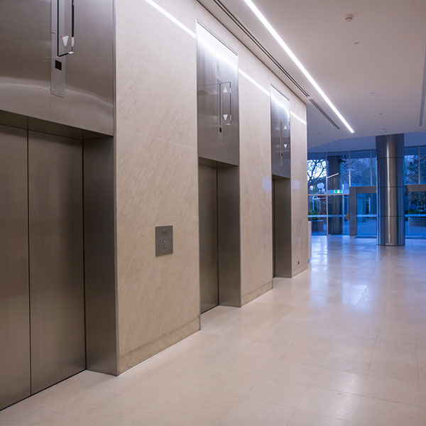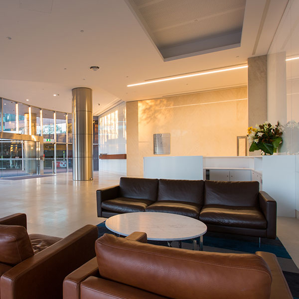 Works to the lobbies had to occur while in use, so extensive use of hoardings and safety procedures were required to maintain business continuity for all tenants. The largest part of the works involved the removal of existing ceilings and installation of new feature ceilings to both lobbies. Works were staged to accommodate continued use of lifts and lobbies, with minimum disruption to building tenants.