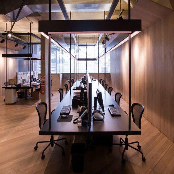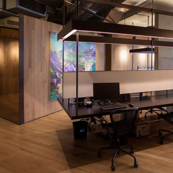 Along with the pods, steel was used to create ‘floating’ workstations. This allows the space to be cleared and utilised as a function space. Client functions and presentations can be hosted without the feel of being in a meeting room, but in a unique venue with personality.